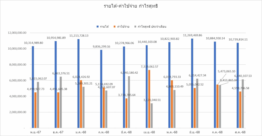 🔵 กำไรสุทธิ พ.ย.67 -ส.ค.68 จำนวน