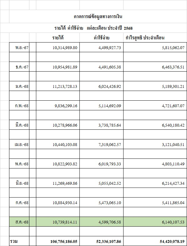 สหกรณ์ฯขออนุญาตส่งรายงานงบกำไร ขาดทุนต่างๆของ สหกรณ์ในเดือน สค.68 โดยมีรายละเอียดดังนี้