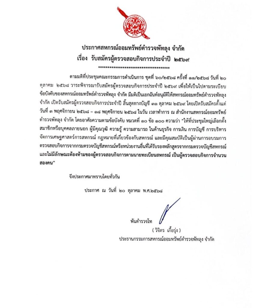 รับสมัครผู้ตรวจสอบกิจการประจำปี 2569