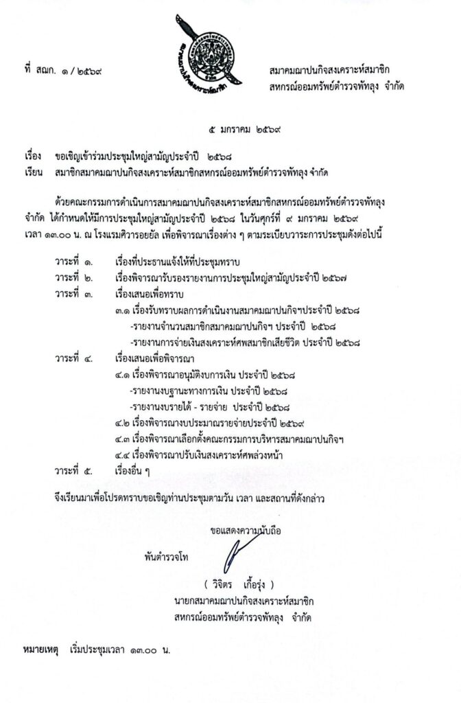 ประชุมใหญ่สามัญประจำปี 2568 สมาชิกสมาคม ฌาปนกิจสงเคราะห์ สมาชิกสหกรณ์ออมทรัพย์ตํารวจพัทลุง จํากัด 9 มกราคม 20269 มกราคม 2026 @admin ข่าวประชาสัมพันธ์ ประชุมใหญ่สามัญประจำปี 2568 สมาชิกสมาคม ฌาปนกิจสงเคราะห์ สมาชิกสหกรณ์ออมทรัพย์ตํารวจพัทลุง จํากัด @admin