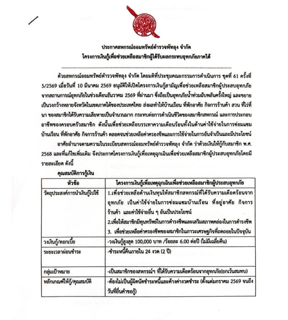 โครงการเงินกู้ช่วยเหลือผู้ได้รับผลกระทบอุทกภัยภาคใต้ 4 เมษายน 20264 เมษายน 2026 @admin ข่าวประชาสัมพันธ์ คำขอกู้อุทกภัยดาวน์โหลด @admin